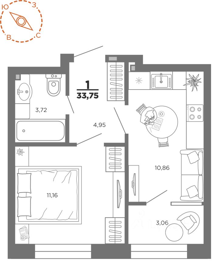33 м² · Этаж 10 из 25