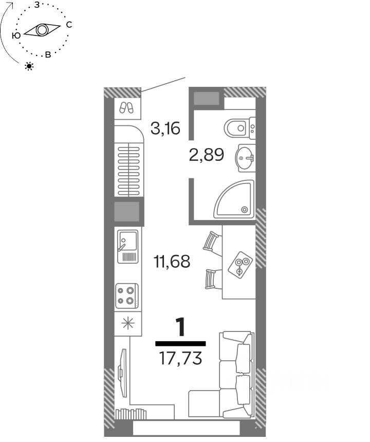 17 м² · Этаж 12 из 25