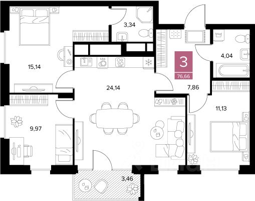 76 м² · Этаж 6 из 9