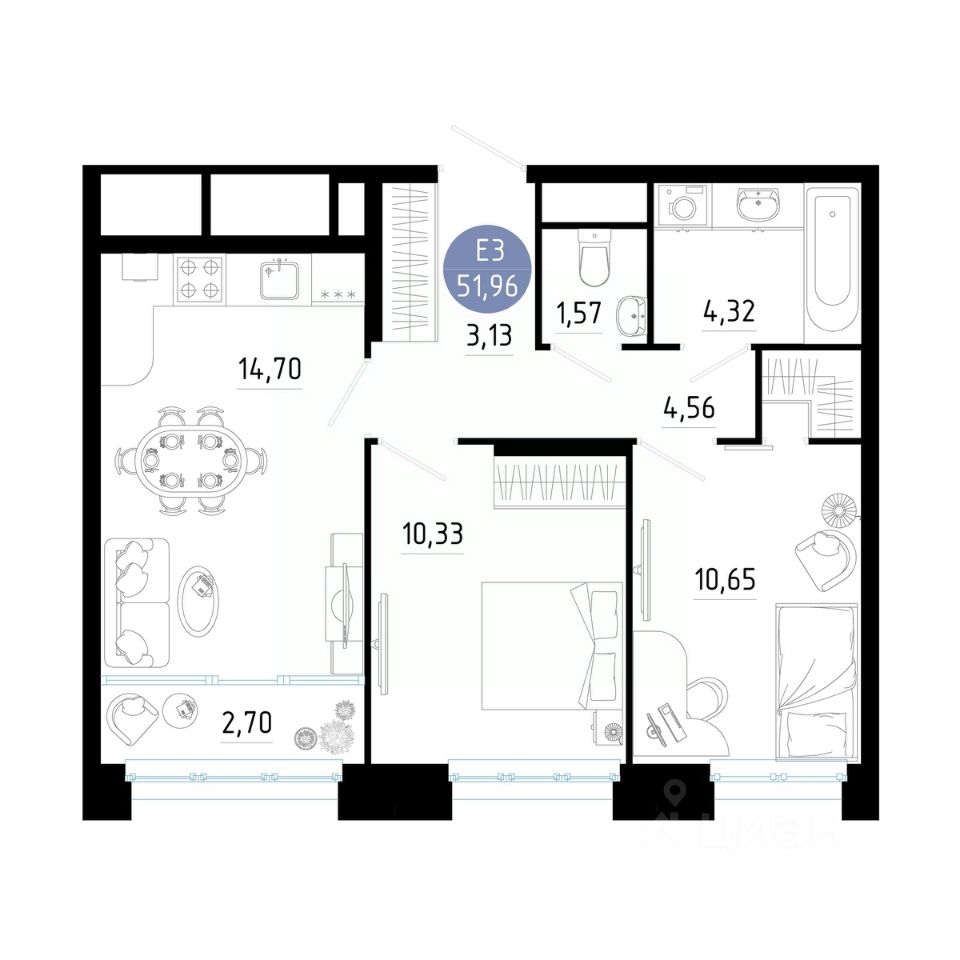 51 м² · Этаж 16 из 25