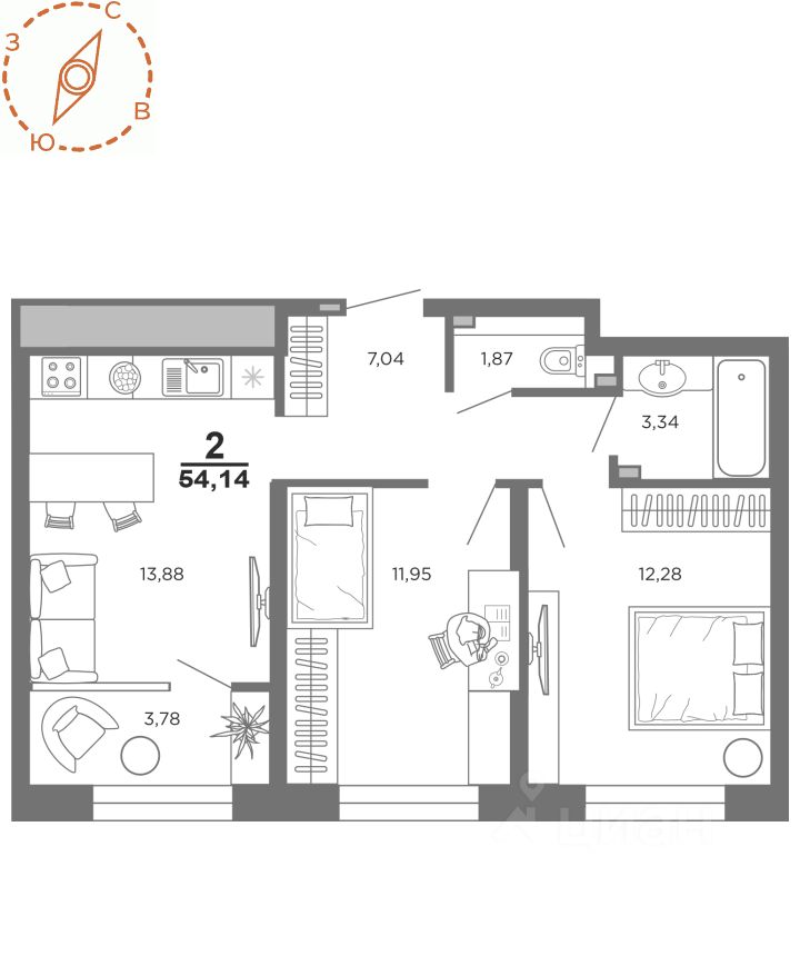 54 м² · Этаж 17 из 22