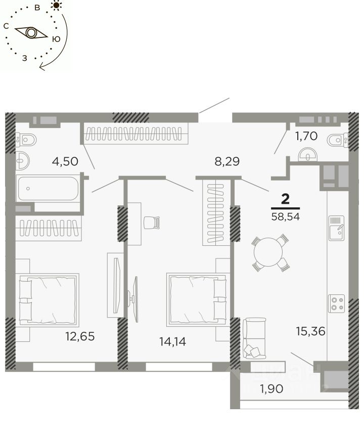 58 м² · Этаж 8 из 16