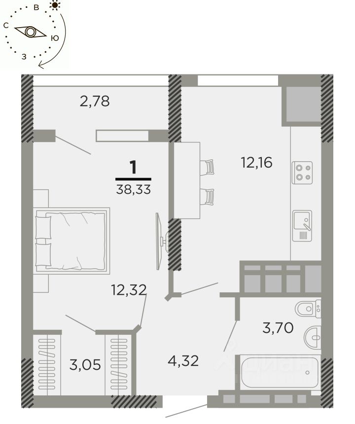 1-к, Совхозная, 6