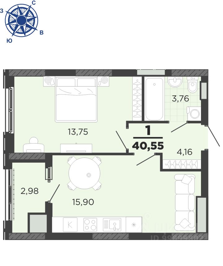 16 м² · Этаж 13 из 22