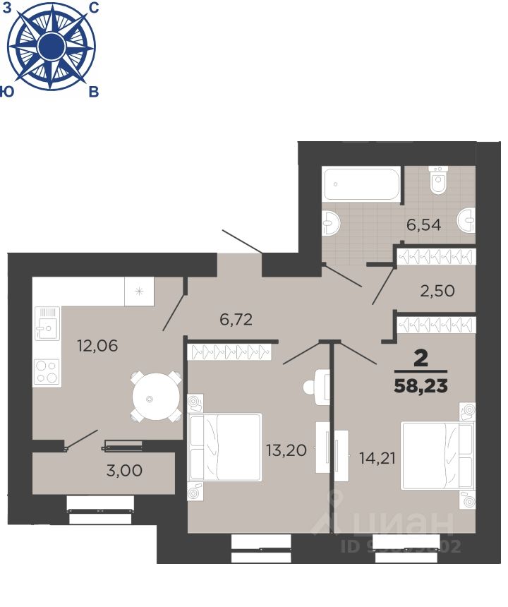 58 м² · Этаж 6 из 24