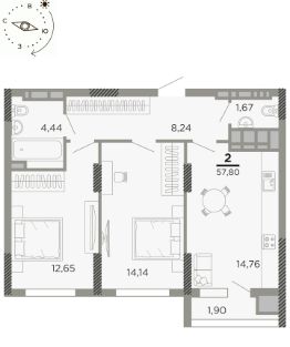 2-к квартира Показать на карте