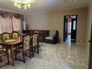 Продается уютный деревянный дом для большой семьи с 5 комнатами, с индивидуальным отоплением. В доме отличный ремонт. В 2023 году произведена полная реконструкция дома с увеличением площади и заменой несущих конструкций. Мебель и техника остается. Двери из массива дуба, натяжные потолки. Санузел в плитке, теплый пол. На полу ламинат и линолеум. На первом этаже 3 комнаты, кухня и большой санузел. На втором этаже 2 большие изолированные комнаты. Отдельно построенный гараж, площадью 5х6 Участок 5,5 соток с фруктовыми деревьями. В шаговой доступности торговые центры, остановка общественного транспорта, автовокзал.