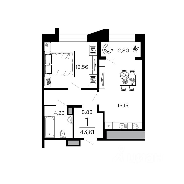 43 м² · Этаж 7 из 25
