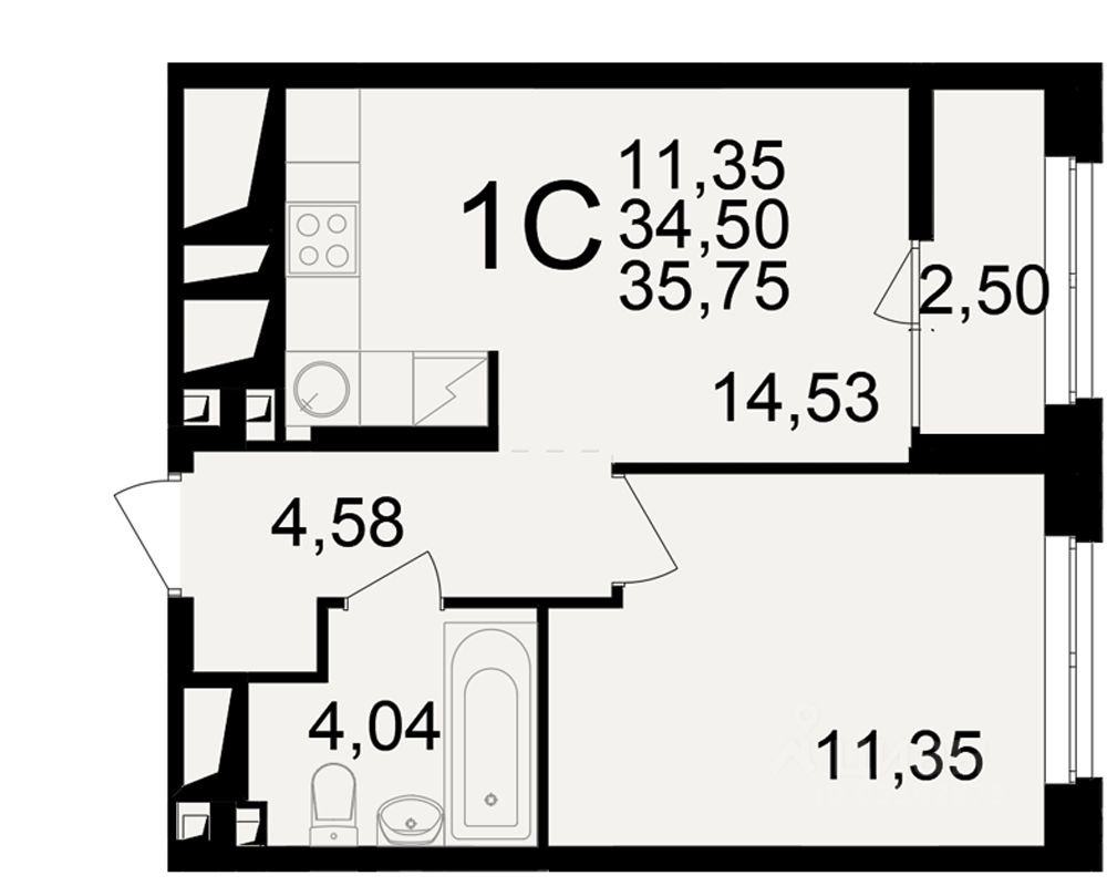 34 м² · Этаж 13 из 25