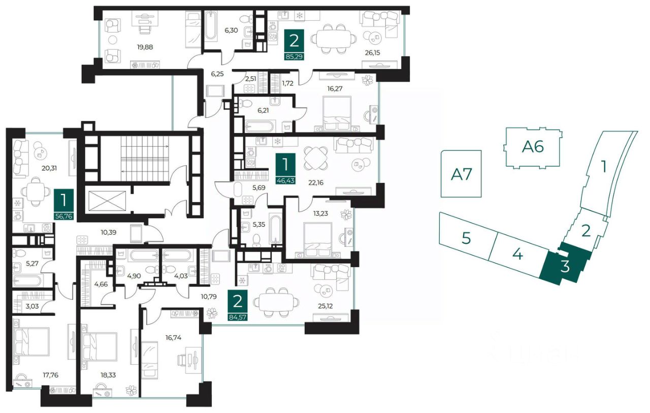 57 м² · Этаж 6 из 25