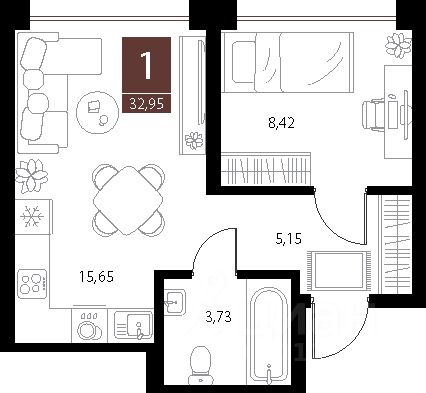 1-к квартира Показать на карте