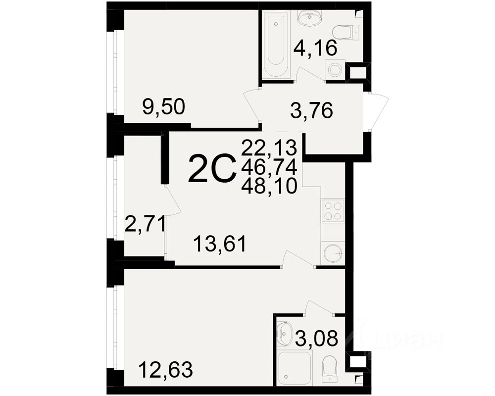 46 м² · Этаж 13 из 25