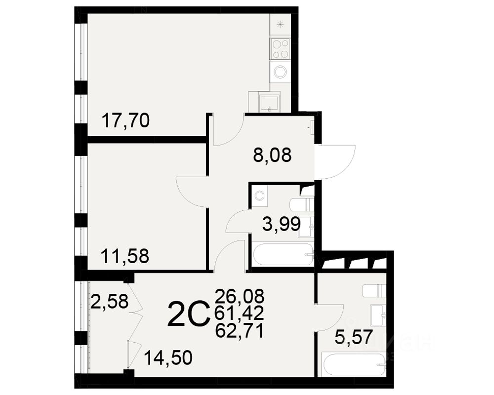 26 м² · Этаж 14 из 25