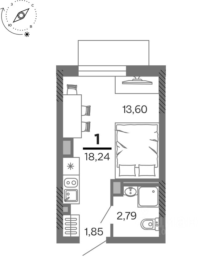 18 м² · Этаж 12 из 25