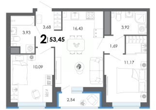 Продаётся 2-комнатная квартира в строящемся доме (Корпус 1), срок сдачи: IV-кв. 2028, общей площадью 46.85 кв.м., на 18 этаже. Новый жилой комплекс ''по ул.Быстрецкая'' от застройщика ''Северная Компания'' расположен по адресу Россия, Рязань, Быстрецкая улица.