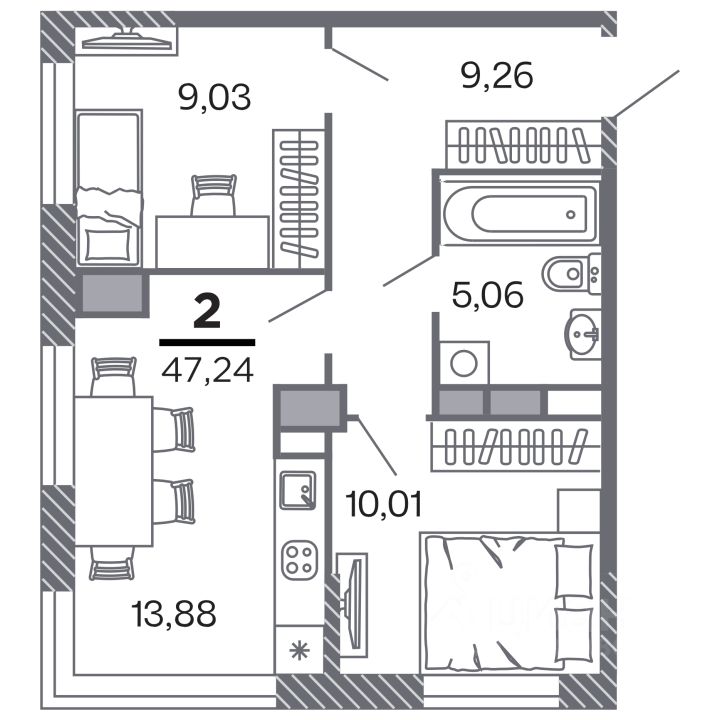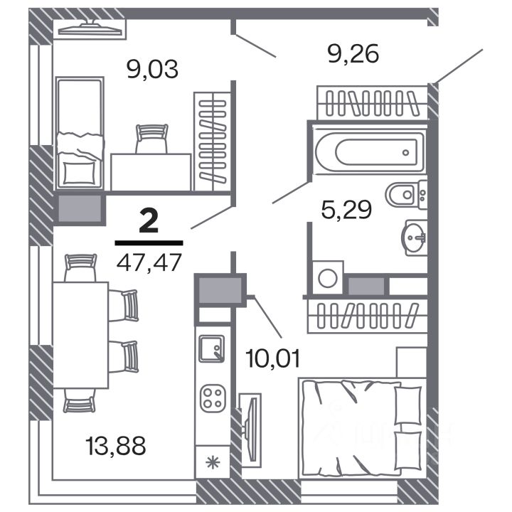 47 м² · Этаж 10 из 25