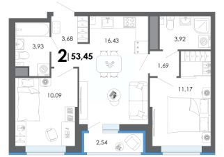 53 м2