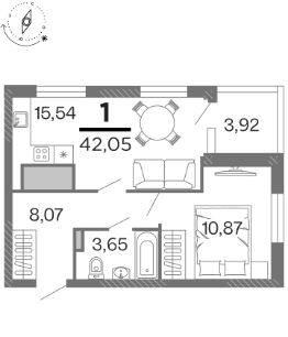 1-к квартира Показать на карте