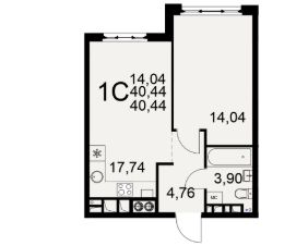 44 м2