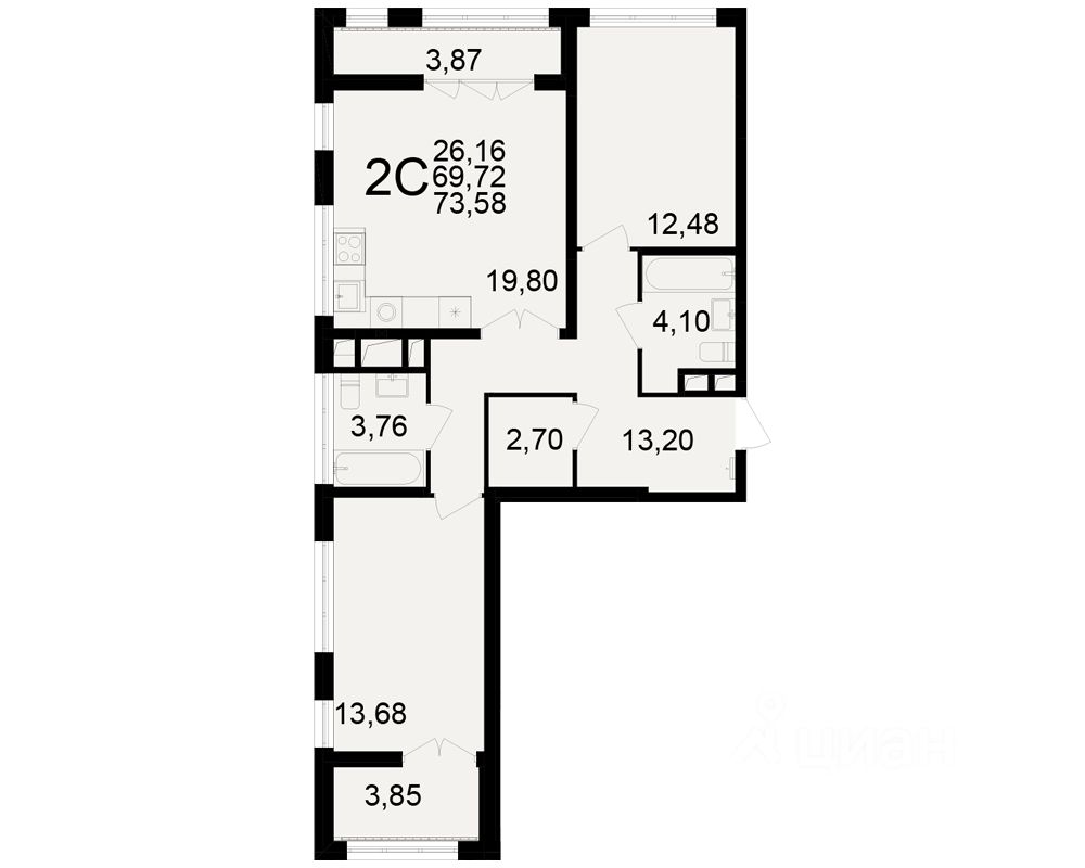 26 м² · Этаж 13 из 25