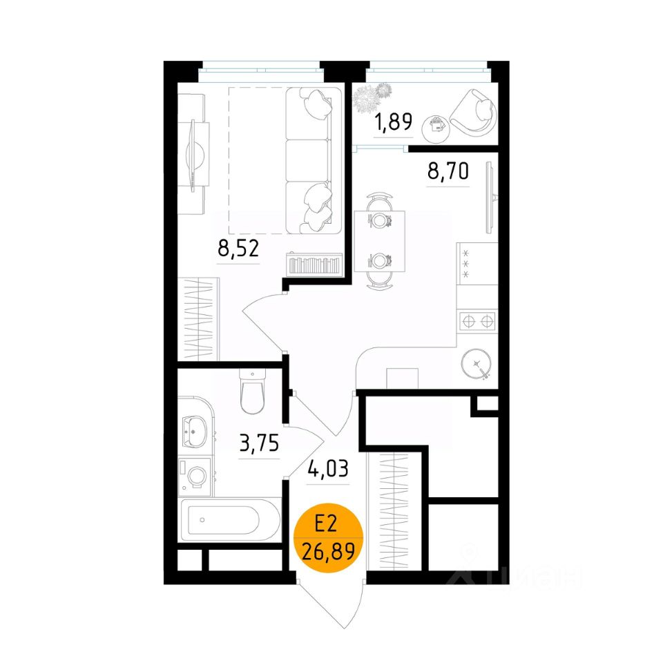 26 м² · Этаж 8 из 25