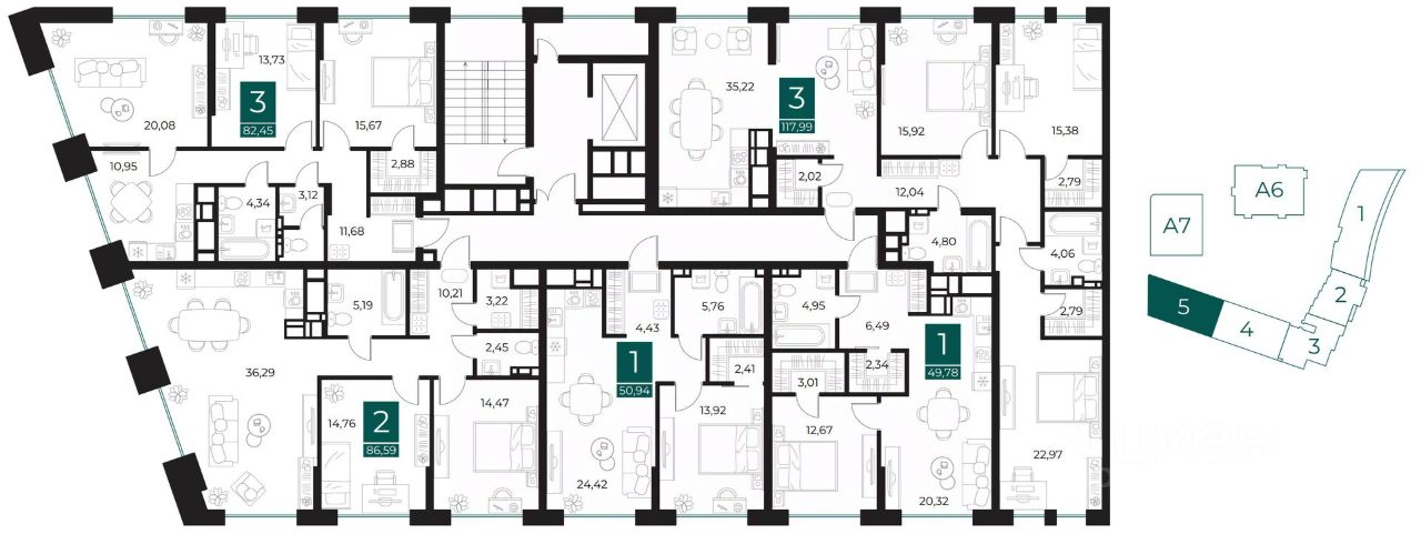 49 м² · Этаж 22 из 25