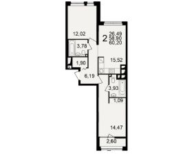 2-к квартира Показать на карте