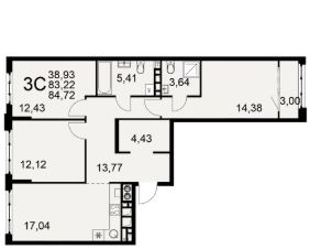 3-к, Бирюзова, 20 ст1 Показать на карте