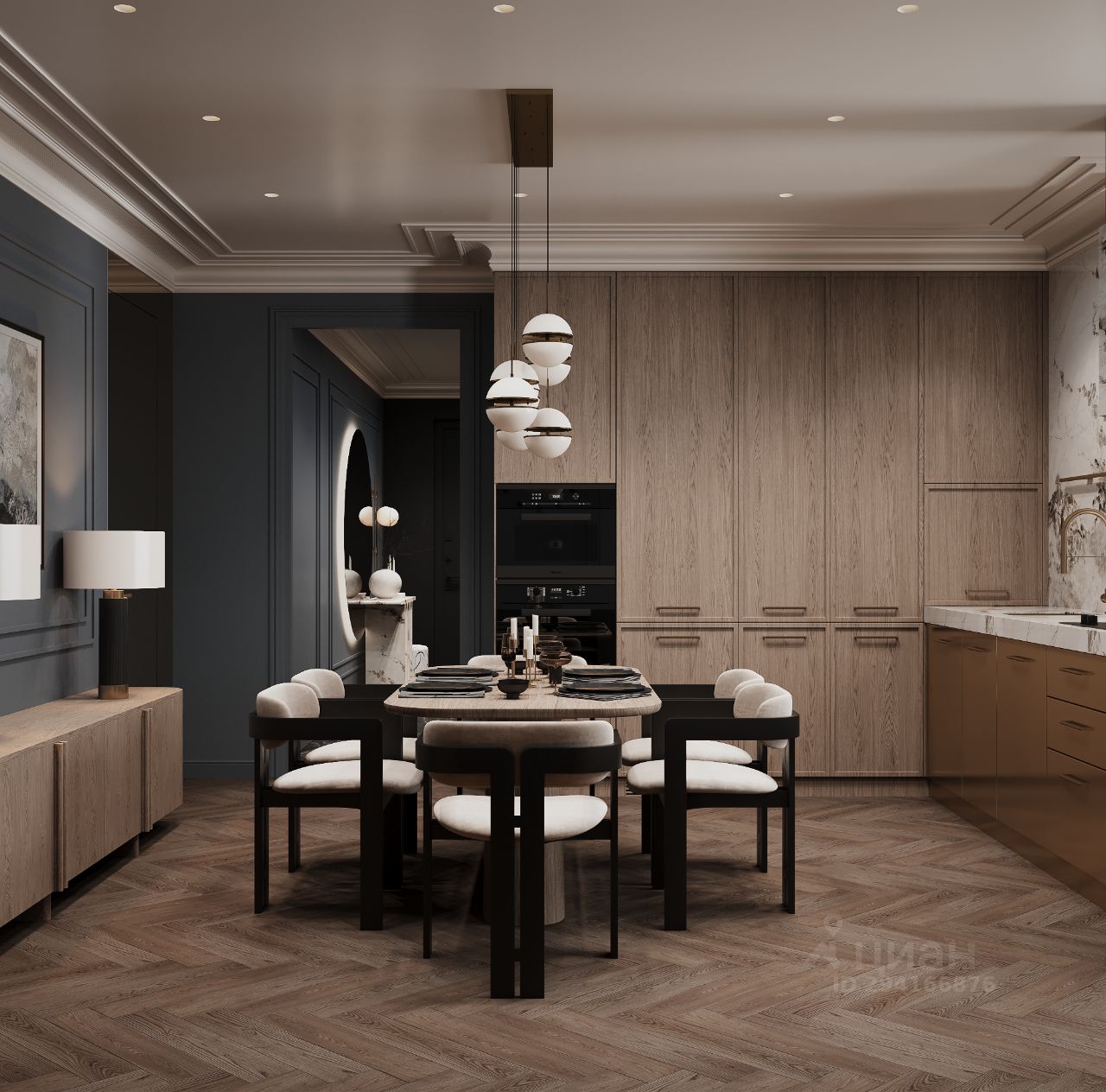 Главный дом с монументальным периметром застройки и акцентными улицами снаружи. Ритмичная форма, французские балконы, разность фасадом делает этот дом особенно привлекательность.