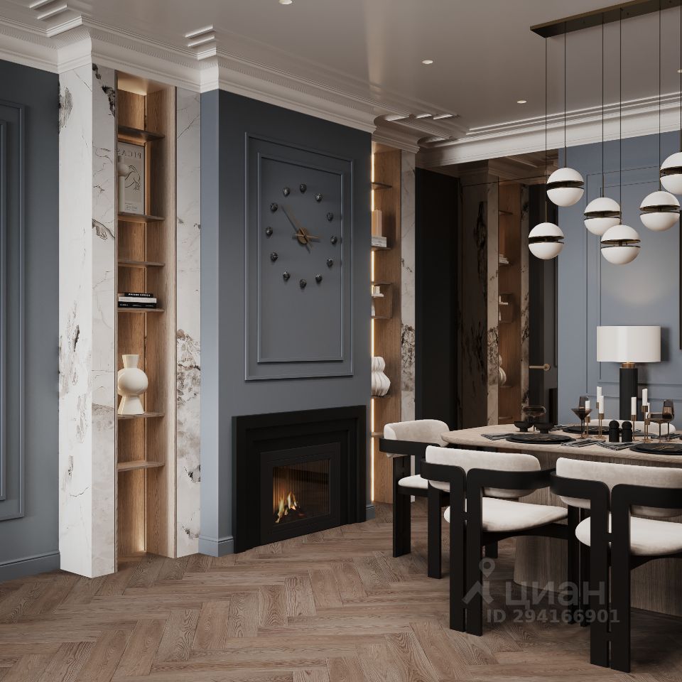 Главный дом с монументальным периметром застройки и акцентными улицами снаружи. Ритмичная форма, французские балконы, разность фасадом делает этот дом особенно привлекательность.
