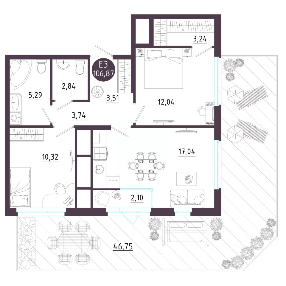Общая площадь106,87 м2