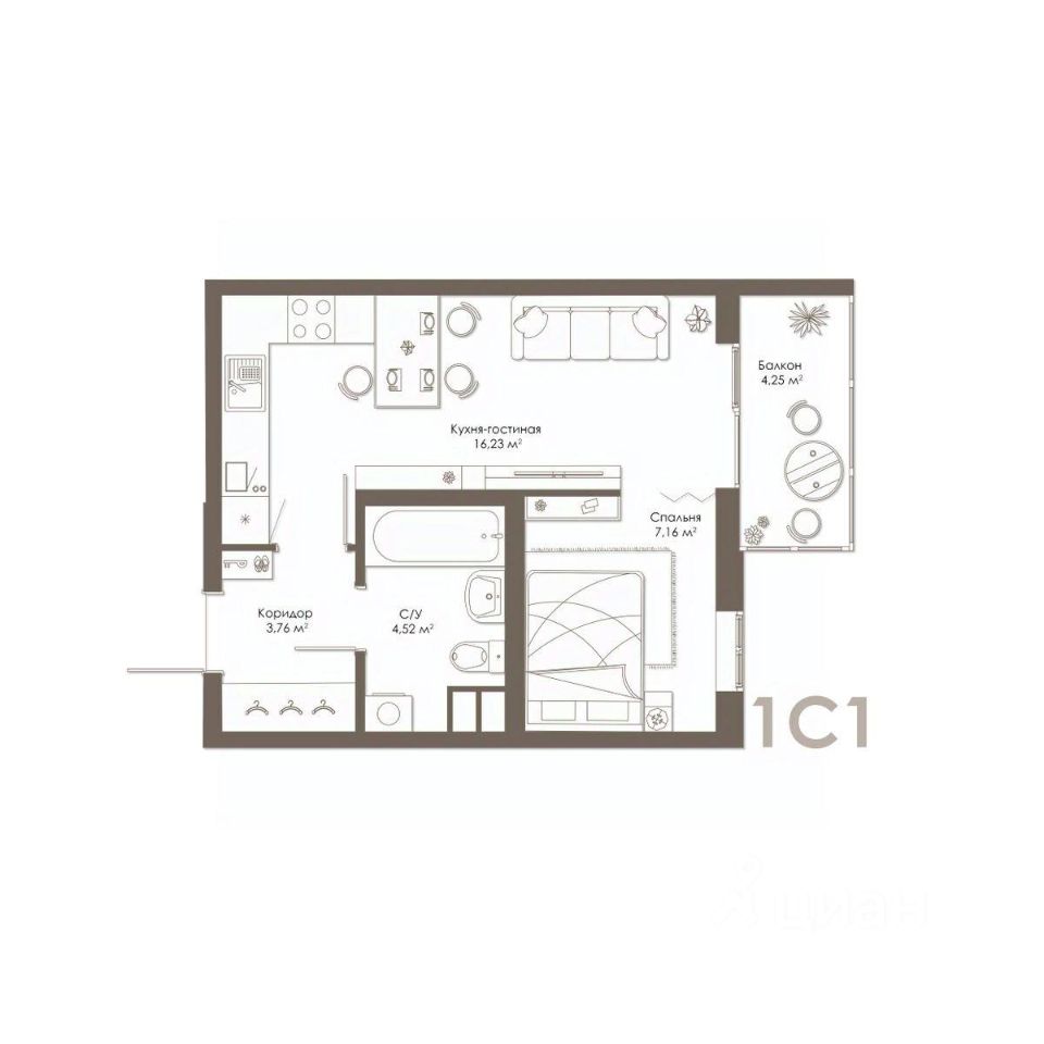 1-комнатная квартира в новом доме комфорт-класса в семейную ипотеку под 4,6%.