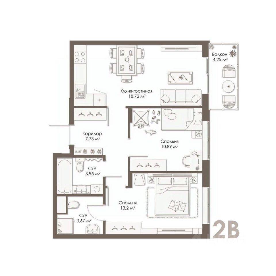 2-комнатная квартира в новом доме комфорт-класса в семейную ипотеку под 4,6%.