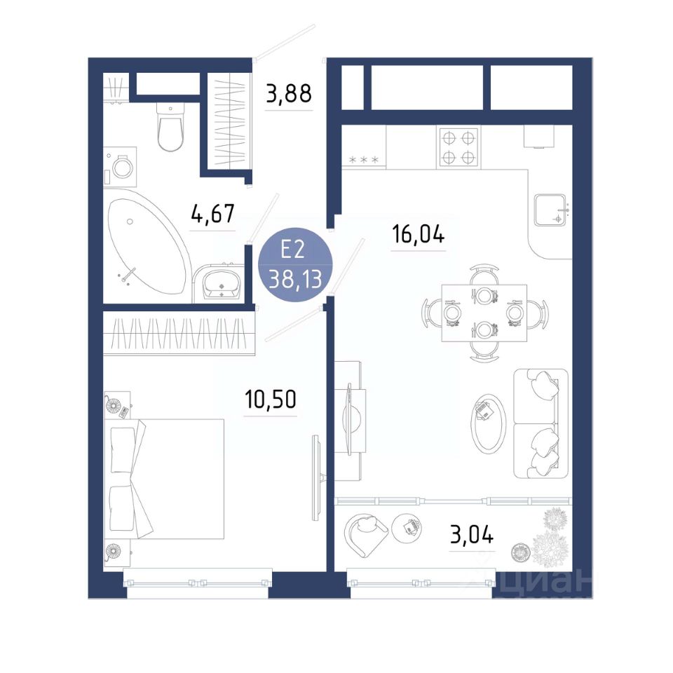 Общая площадь38,13 м2