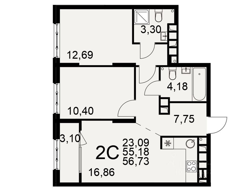 Общая площадь55,18 м2