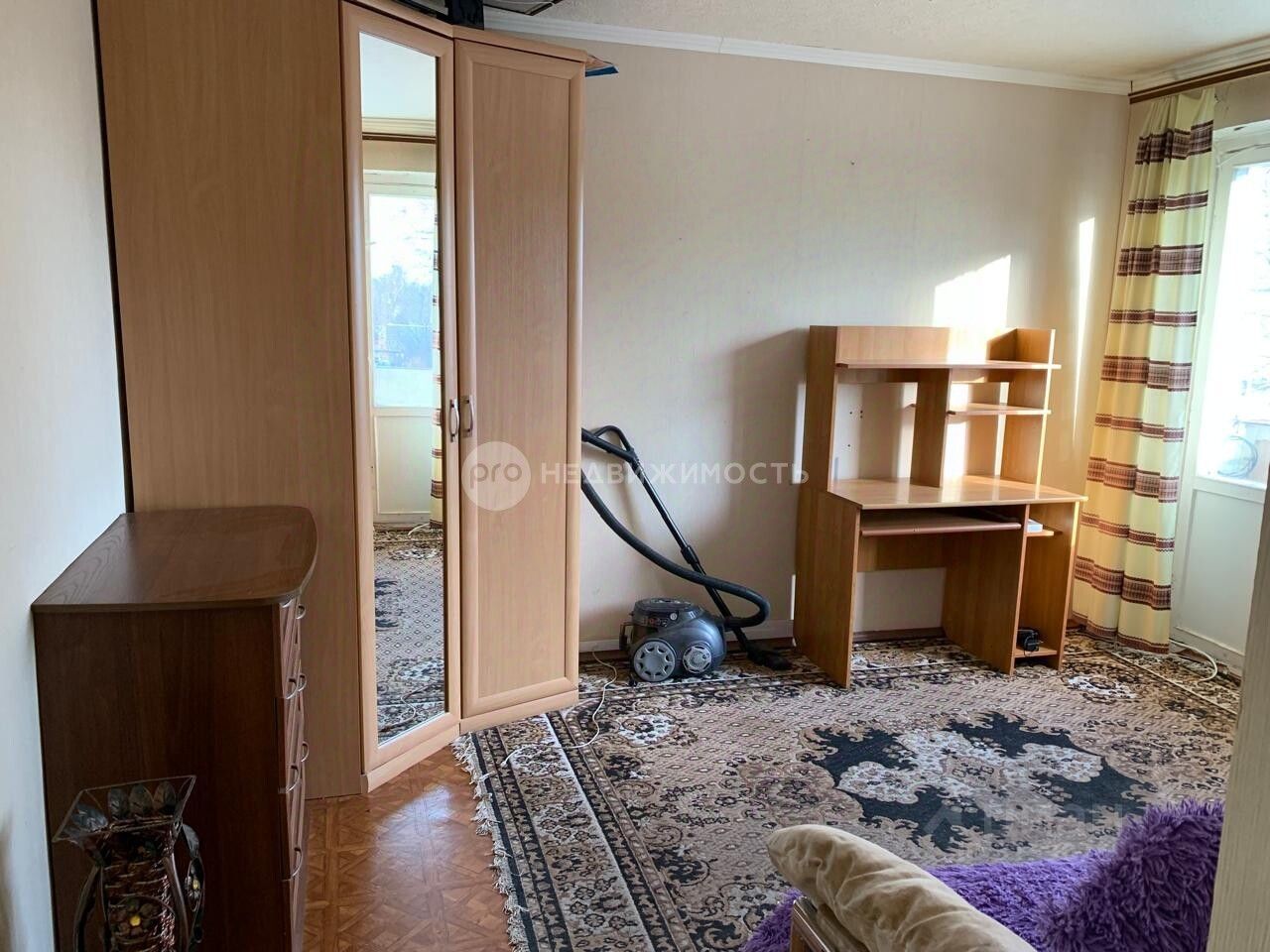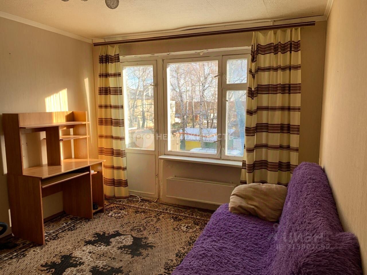 - в комнате сделано зонирование на спальню и небольшой зал,