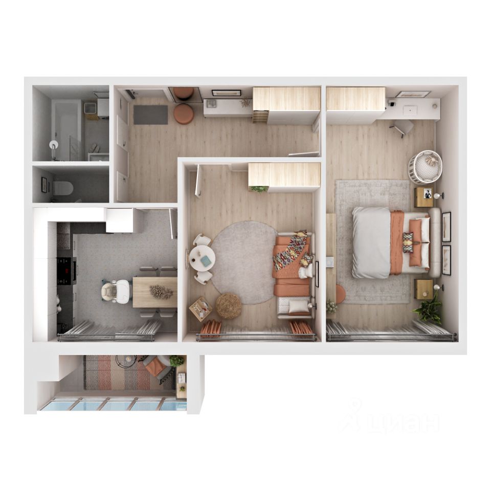 Большая мастер-спальня станет уединённым уголком для отдыха и расслабления, а детская комната обеспечит уютное пространство для ваших детей.
