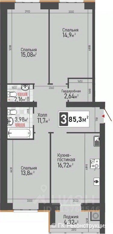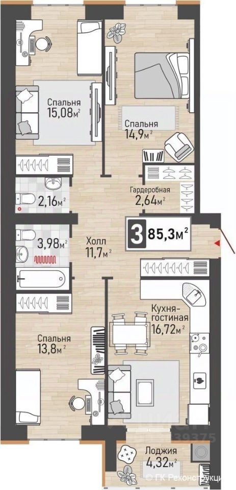 Общая площадь85,3 м2