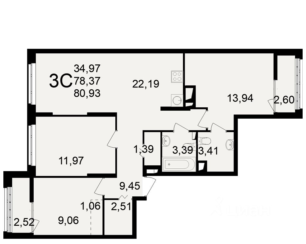 Общая площадь78,37 м2