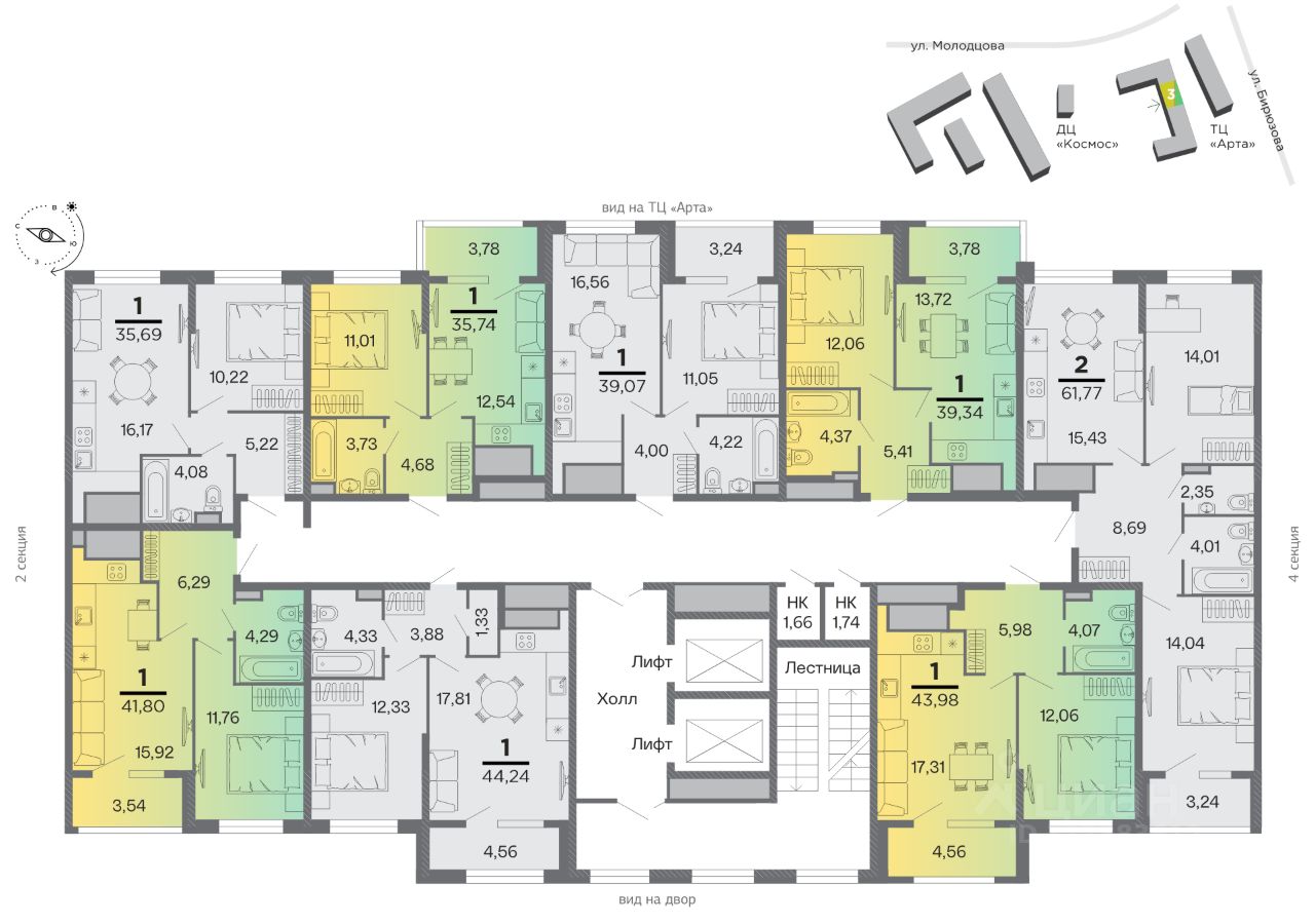Продаётся 1-комнатная квартира в строящемся доме (Дом 4), срок сдачи: IV-кв. 2029, общей площадью 39.07 кв.м., на 4 этаже. Новый современный жилой комплекс комфорт-класса с прилегающей парковой территорией и уникальной архитектурой. Жилой комплекс гармонирует с зеленой зоной - район застройки расположен в непосредственной близости от березовой рощи и парка им. Гагарина, площадью в 130 тысяч м2. Локация дома располагает к занятиям спортом на свежем воздухе и приятным вечерним прогулкам в тени деревьев. Дизайн входных групп и общественных пространств создан с акцентом на природное происхождение материалов. В работе использованы керамический кирпич, мрамор, керамогранит, дерево.