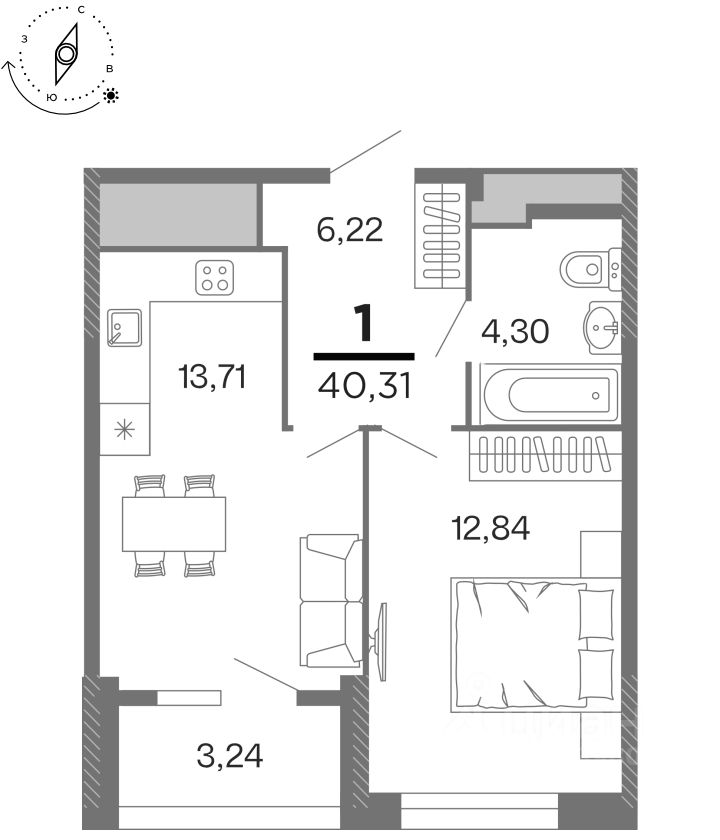 Общая площадь40,31 м2