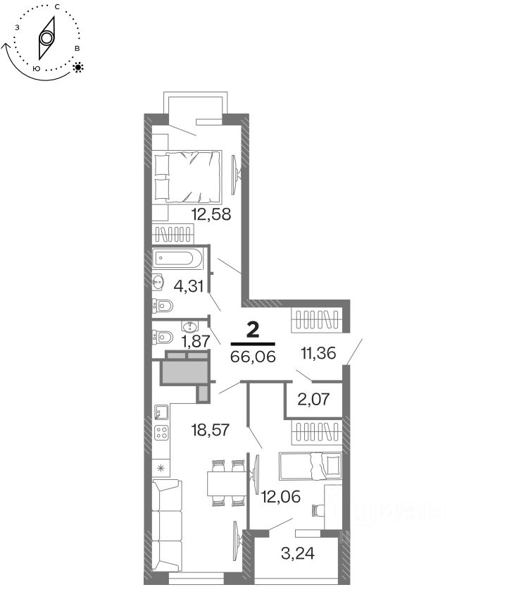 Общая площадь66,06 м2
