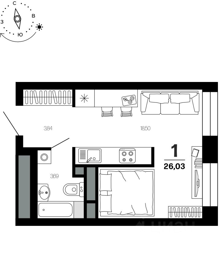 Общая площадь26,03 м2