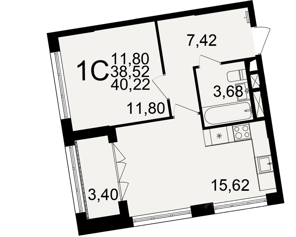 Общая площадь38,52 м2