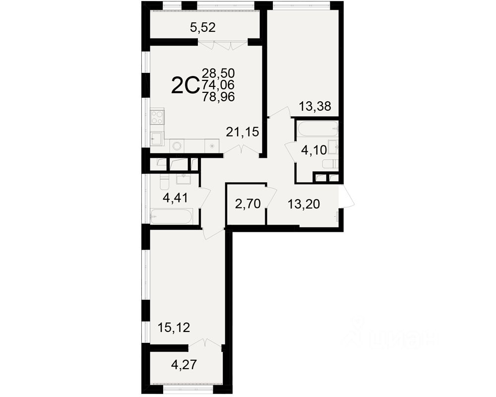 Общая площадь74,06 м2