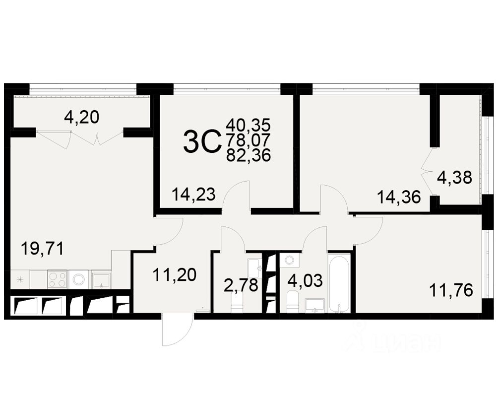 Общая площадь78,07 м2