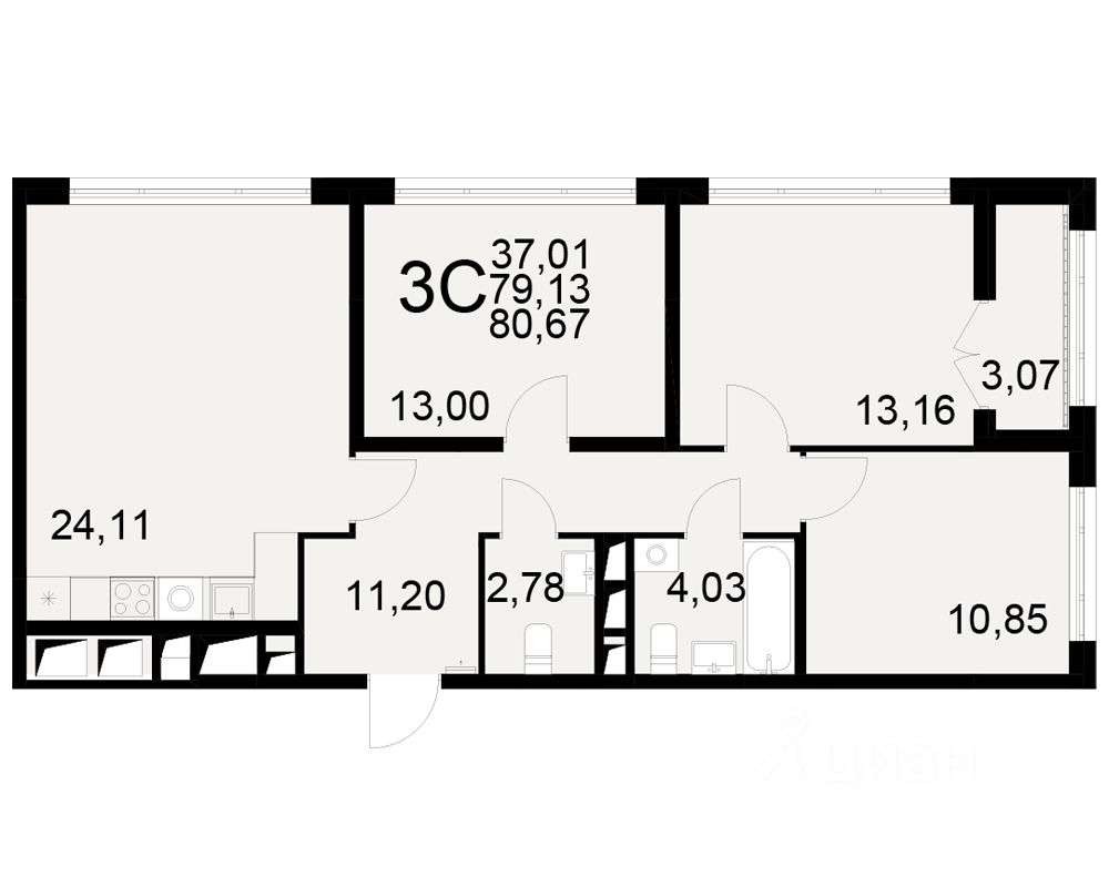 Общая площадь79,13 м2