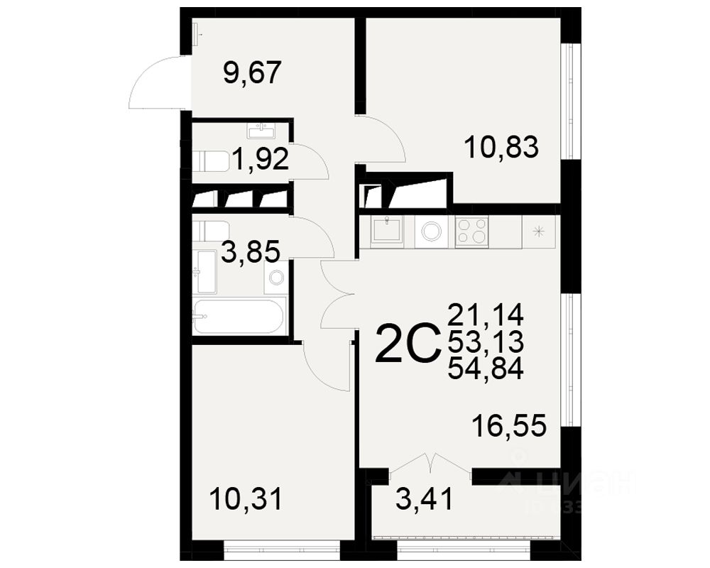 Общая площадь53,13 м2