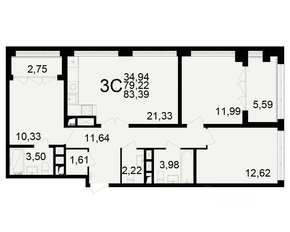 Общая площадь79,22 м2