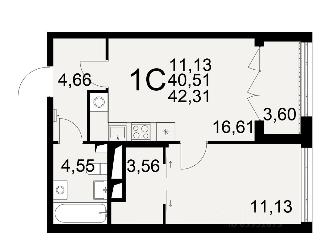 Общая площадь40,51 м2